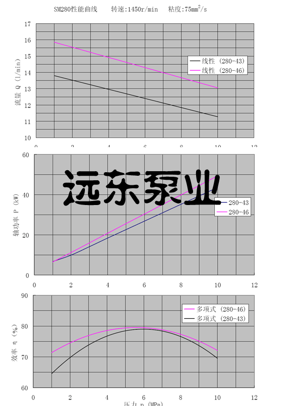 SM280三螺桿泵轉(zhuǎn)速1450性能曲線圖